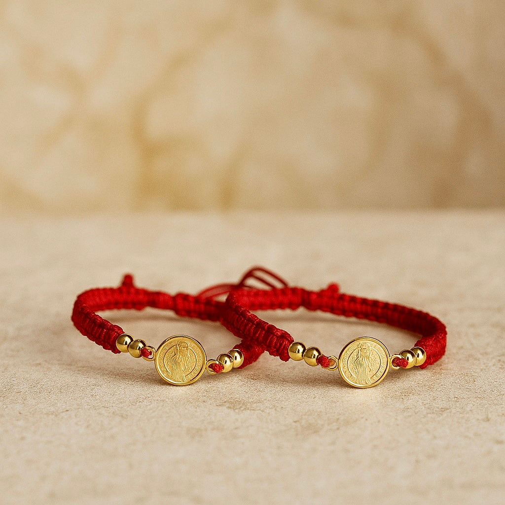 • Materiales: Hilo coreano de alta resistencia, balines en oro laminado, medalla san Benito